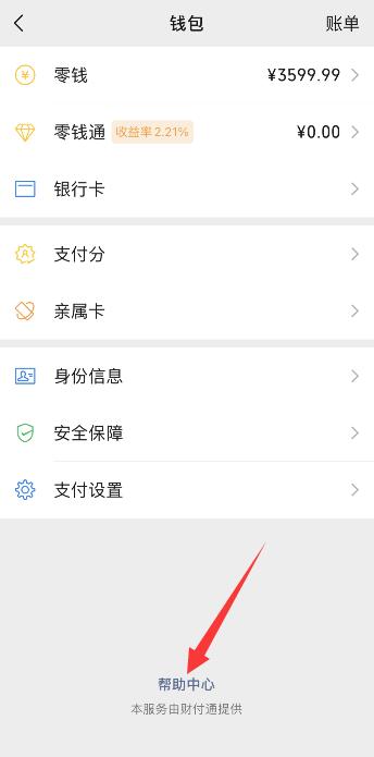 点击钱包,选择底部帮助中心。