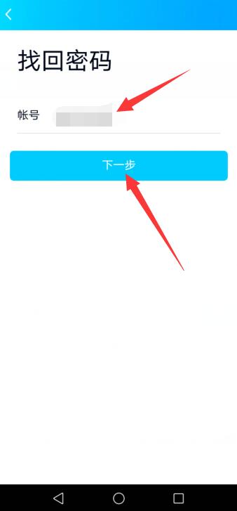 输入找回密码账号,点击下一步。
