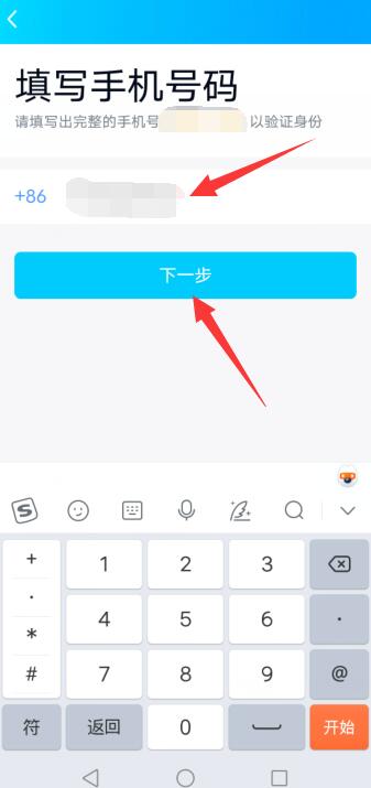输入手机号码,点击下一步。