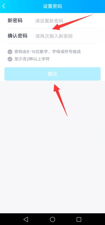 进入设置密码,输入新密码和确认密码,点击确定即可。
