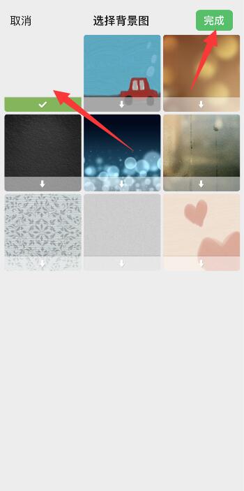 选择背景图图案,点击右上角的完成。