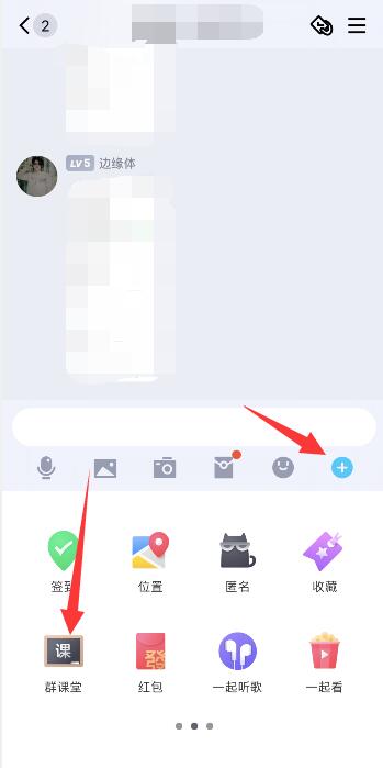点击加号图标,进入页面后,点击群课堂,再点击群课堂选项。