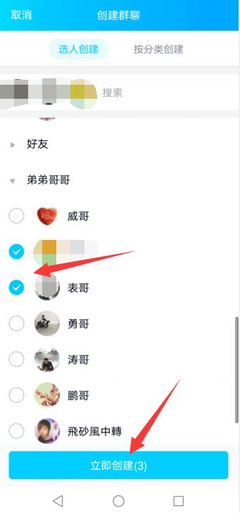 勾选好友,点击立即创建即可。