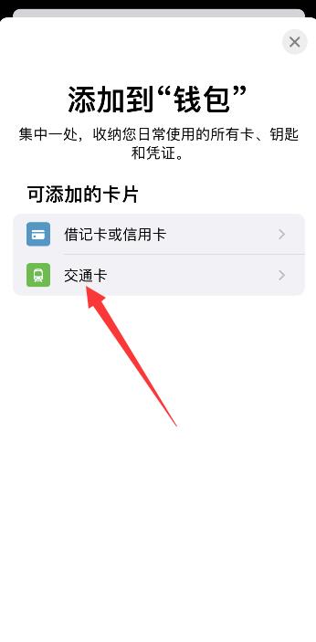 选择交通卡,进行添加。