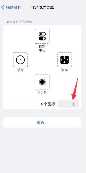 点击自定顶层菜单,点击加号图标,再点击大加号图标。
