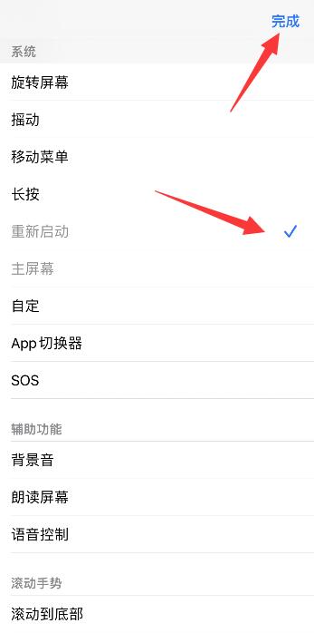 进入页面后,勾选重新启动,点击右上角的完成。