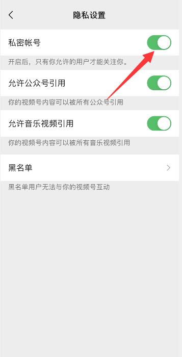 进入页面后,将私密账号右侧按钮开启即可。