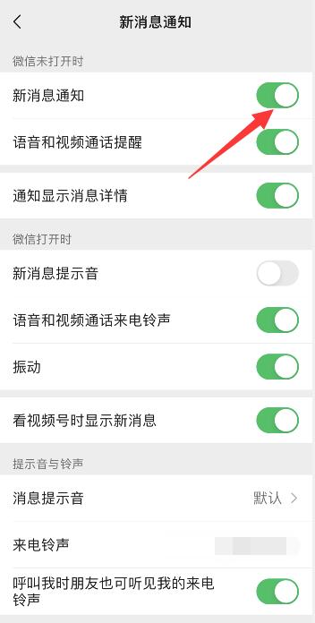 点击新消息提醒,将新消息提醒右侧按钮开启即可。