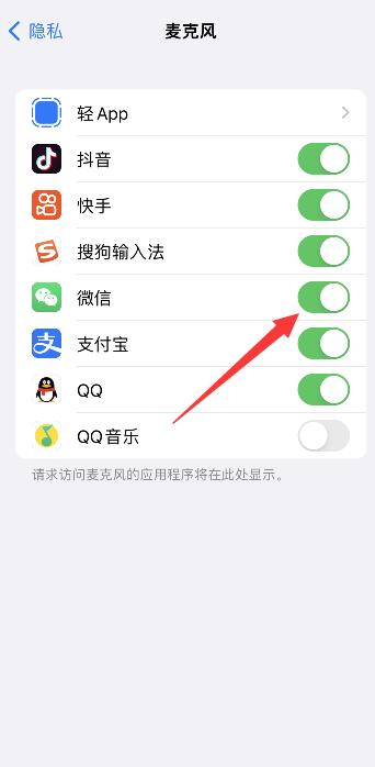点击麦克风,进入页面,将微信右侧按钮开启即可。