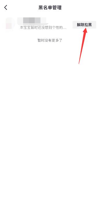 点击黑名单,进入页面,点击好友头像旁边的解除拉黑即可。
