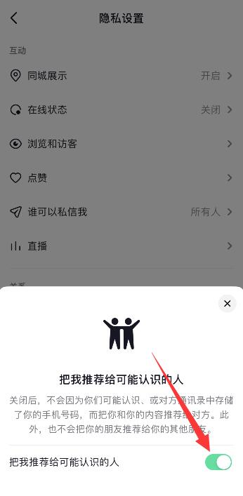 进入页面后,将把我推荐给可能认识的人按钮开启即可。