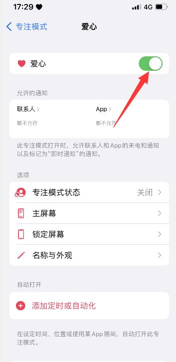 返回专注模式,将爱心右侧按钮开启即可。