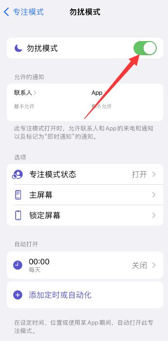 进入页面,点击勿扰模式,将勿扰模式开启。