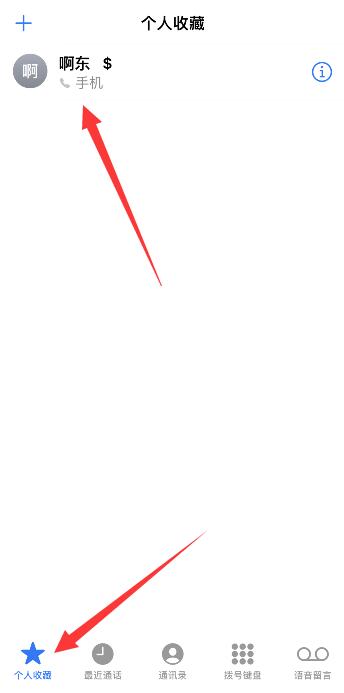 返回手机桌面,打开拨号图标,点击个人收藏,选择联系人右侧的感叹号。