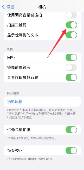 进入页面后,将扫描二维码右侧按钮开启即可。
